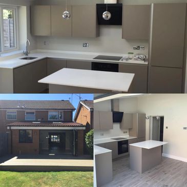 Flat Roof, Doors, Skirting and Architrave, Timber Flooring, Kitchen.